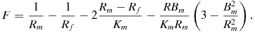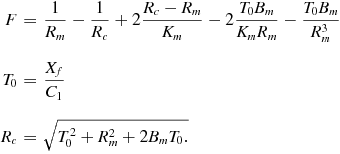 F&=&\frac{1}{R_m}-\frac{1}{R_c}+2\frac{R_c-R_m}{K_m}-2\frac{T_0 B_m}{K_m R_m}-\frac{T_0 B_m}{R_m^3} \nonumber\\[3pt]