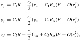 x_f&=&C_1 R+\frac{r_s}{2}(x_m + C_1 B_m) F+O(r_s^2) \nonumber\\[3pt]