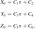 X_0&=&C_1 \tau +C_2 \nonumber\\[3pt]