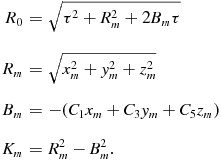 R_0&=&\sqrt{\tau ^2 + R_m^2 + 2 B_m \tau } \nonumber\\[3pt]