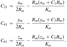 C_{41}&=&\frac{y_m}{2 R_m}-\frac{R_m(y_m + C_3 B_m)}{K_m} \nonumber\\[3pt]