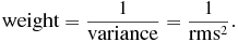 \text{weight} = \frac{1}{\text{variance}} = \frac{1}{\text{rms}^{2}}.