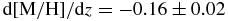 $\text{d}[\text{M}/\text{H}]/\text{d}z=-0.16\pm 0.02$ dex kpc−1 for z ⩽ 3 kpc and b = +45°, (Ak et al., Reference Ak, Bilir, Karaali and Buser2007a);