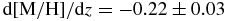 $\text{d}[\text{M}/\text{H}]/\text{d}z=-0.22\pm 0.03$ dex kpc−1 for z ⩽ 3 kpc and b = +60°, (Ak et al., Reference Ak, Bilir, Karaali, Buser and Cabrera-Lavers2007b);