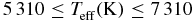 $5310\le T_{\text{eff}}(\text{K})\le 7310$ (Cox, Reference Cox and Cox2000) and their surface gravities are identified by ZAMS and TAMS lines via mass tracks in the