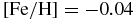 $[\text{Fe}/\text{H}]= -0.04$ dex and