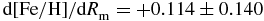 $\text{d}[\text{Fe}/\text{H}]/\text{d}R_{\rm m}=+0.114\pm 0.140$ and