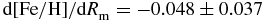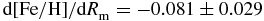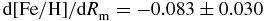 $\text{d}[\text{Fe}/\text{H}]/\text{d}R_{\rm m}=-0.083\pm 0.030$ and
