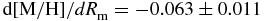 $\text{d}[\text{M}/\text{H}]/dR_{\rm m}=-0.063\pm 0.011$ dex kpc−1 and