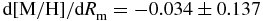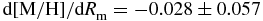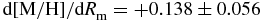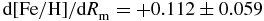 $\text{d}[\text{Fe}/\text{H}]/\text{d}R_{\rm m}=+0.112\pm 0.059$,