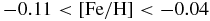 $-0.11<[\text{Fe}/\text{H}]<-0.04$ and
