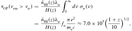 where we have placed τGP within the sum, because τGP depends on redshift as τGP∝(1 + z i)3/2, and therefore differs slightly for each neutral patch (at redshift z i).