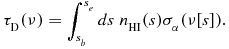 We can quantify the impact of neutral intergalactic gas on the Lyα flux from galaxies following our analysis in Section 5.2. We denote the optical depth in the neutral intergalactic patches with τD. We first consider the simplest case in which a Lyα photon encounters one fully neutral patch which spans the line-of-sight coordinate from sb (‘b’ stands for beginning) to se (‘e’ stands for end):
