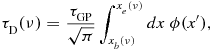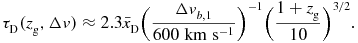where x e denotes the frequency that photon has redshifted to when it exits from the last neutral patch, while x b, 1 denotes the photon’s frequency when it encounters the first neutral patch. Because typically |x e| ≫ |x b, 1| we can drop the term that includes x e. We further substituted the definition of the Voigt parameter a v = A α/(4πΔνD), to rewrite x b, 1 as a velocity off-set from line resonance when a photon first enters a neutral patch, Δv b, 1 = Δv + H(z g)R b, i /(1 + z g).