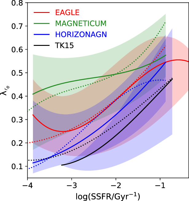 ). The division between these two common classes continues to be nuanced (Emsellem et al. Reference Emsellem2007, Reference Emsellem2011; Cappellari Reference Cappellari2016; Graham et al. Reference Graham2018; van de Sande et al. Reference van de Sande2020). The origin of this possible bimodality is still unclear, with theoretical simulations and detailed observational studies finding multiple possible formation pathways for the rarer slow-rotator population (e.g. Khochfar et al. Reference Khochfar2011; Penoyre et al. Reference Penoyre, Moster, Sijacki and Genel2017; Lagos et al. Reference Schaye, Bahé, Van de Sande, Kay, Barnes, Davis and Dalla Vecchia2018b; Schulze et al. Reference Schulze, Remus, Dolag, Burkert and Emsellem2018; Krajnović et al. Reference Krajnović2020; Walo-Martín et al. Reference Walo-Martín, Falcón-Barroso, Dalla Vecchia, Pérez and Negri2020, also see Figure 1).
