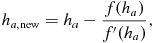 h_{a, {\rm new}} = h_{a} - \frac{f(h_{a})}{f^{\prime }(h_{a})},