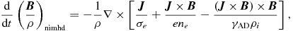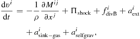 where  ${\bm r}$ is the particle position and ρ is the density. These equations use the Lagrangian time derivative,