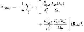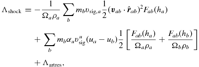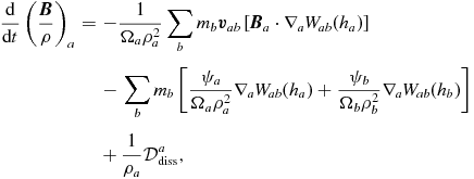 where  $W_{ab}(h_{a})\equiv W(\vert {\bm r}_{a} - {\bm r}_{b}\vert , h_{a})$ and Ωa is a term related to the gradient of the smoothing length (Springel & Hernquist Reference Springel and Hernquist2002; Monaghan Reference Monaghan2002) given by