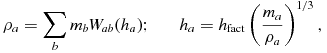 h_{a} = h_{\rm fact} n_{a}^{-1/3} = h_{\rm fact} \left( \frac{m_{a}}{\rho _{a}} \right)^{1/3},