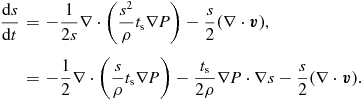 \frac{{\rm d}\rho }{{\rm d}t} = -\rho (\nabla \cdot {\bm v}),