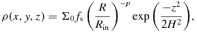 where f ≡ RΣ = R 1 − p and f max = R 1 − pin (or f max = R 1 − pout if p ⩽ 1). Finally, the z position is chosen with a third random number u 3 ∈ [− z max, z max] such that u 3 < g, where g = exp[ − z 2/(2H 2)] and  $z_{\rm max} = \sqrt{6}H$.