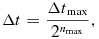 \Delta t = \frac{{\Delta t}_{\rm max}}{2^{n_{\rm max}}},
