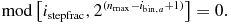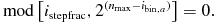 {\rm mod}\left[i_{\rm stepfrac}, 2^{(n_{\rm max} - i_{{\rm bin}, a})} \right] = 0.