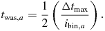 t_{{\rm was}, a} = \frac{1}{2} \left(\frac{\Delta t_{\rm max}}{i_{{\rm bin}, a}}\right).