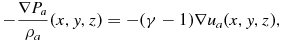 -\frac{\nabla P_{a}}{\rho _{a}} (x,y,z) = -(\gamma - 1) \nabla u_{a}(x,y,z),