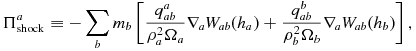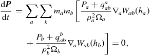 \Omega _{a} \equiv 1 - \frac{\partial h_{a}}{\partial \rho _{a}}\sum _{b} m_{b} \frac{\partial W_{ab} (h_{a})}{\partial h_{a}}.