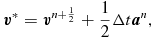 In particular, the first and last steps in the above (involving twas) interpolate the velocity to the current time. All other variables defined on the particles, including the thermal energy, magnetic field, and dust fraction, are timestepped following the velocity field.
