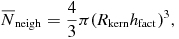 \overline{N}_{\rm neigh} = \frac{4}{3} \pi (R_{\rm kern} h_{\rm fact})^{3},