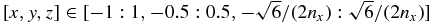 where L x, L y, and L z are the length of the domain in each direction and the positions are relative to the edge of the box. We then compute the acceleration according to (34) with the artificial viscosity and other terms switched off, assuming an adiabatic EOS [Equation (25)] with ρ = constant. We then test that numerical acceleration on all 106 particles is within some tolerance of the analytic pressure gradient expected from (341), namely