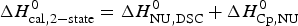 $\Delta H_{\rm NU,DSC}^0 + \Delta H_{C_{\rm p, NU}}^0 $ and must be compared with