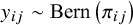 ${y}_{ij}\sim \mathrm{Bern}\left({\pi}_{ij}\right)$