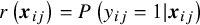 $r\left({\boldsymbol{x}}_{ij}\right)=P\left({y}_{ij}=1|{\boldsymbol{x}}_{ij}\right)$