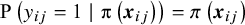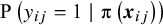 $\mathrm{P}\left({y}_{ij}=1\mid \unicode{x3c0}\left({\boldsymbol{x}}_{ij}\right)\right)=\pi \left({\boldsymbol{x}}_{ij}\right)$