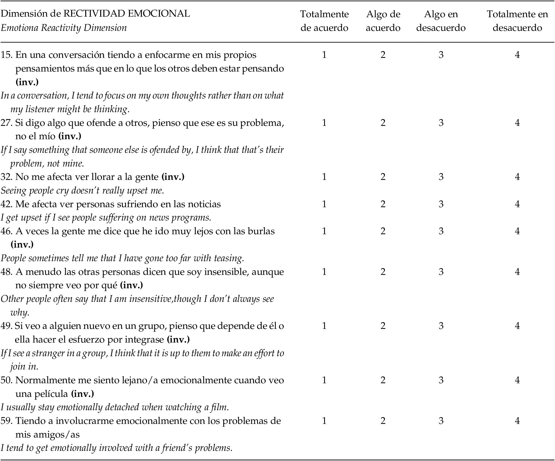 – Los ítems invertidos (inv.) se puntúan de forma inversa.
