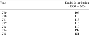 160. I rely here upon data presented in Table Cc1-2 (“Consumer price indexes, for all items: 1774–2003”) of Carter, Susan B. et al. , eds., Historical Statistics of the United States: Millennial Edition Online (Cambridge, UK: Cambridge University Press, 2006)Google Scholar. According to Paul David and Peter Solar's consumer price index, which uses 1860 as its base year (100), costs in the early years of the postratification United States were as follows: