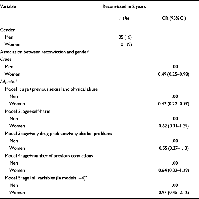 Table 3 Odds ratios for reconviction in 116 women compared with 843 men discharged from medium secure units