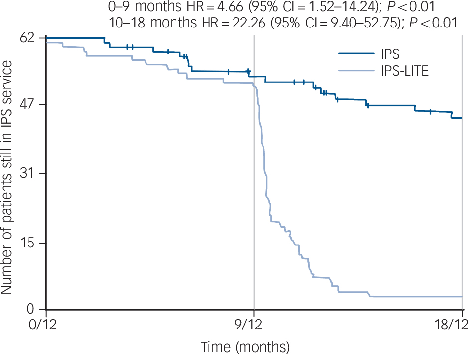 HR, hazard ratio; IPS, individual placement and support; IPS-LITE, time-limited IPS