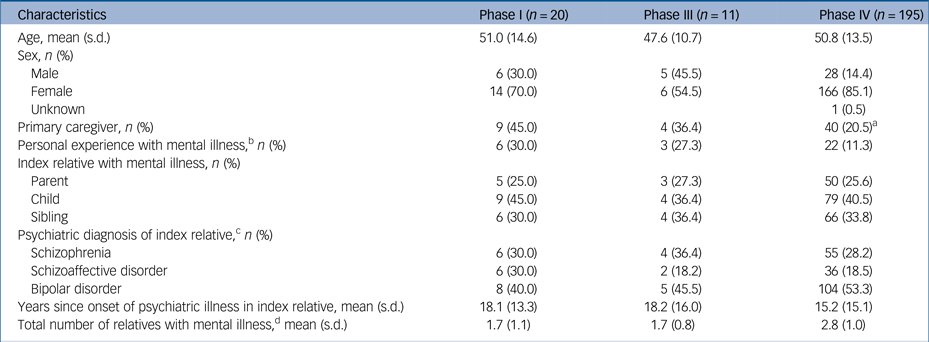 d. In phase III and IV, when the participants had more than one first-degree relative with a mental illness of interest, we administered the FIGS regarding the individual for whom they had the most knowledge of symptoms and diagnosis to confirm the participant's eligibility – this became their ‘index relative’.