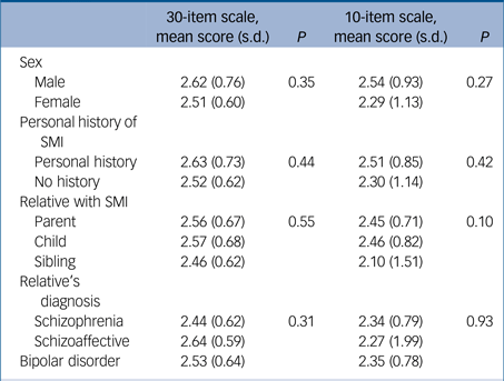 Table 3 Mean Self-Stigma in Relatives of people with Mental Illness scores for the 30-item and 10-item scales