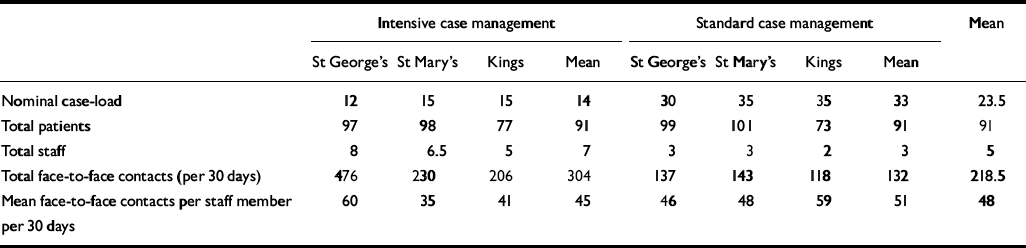 Table 1 Contact frequencies for patients in the intensive and standard case management groups of the UK700 trial