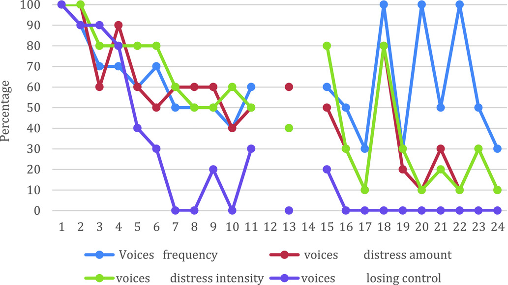 The primary aim of this intervention was to reduce the distress associated with experiencing dissociation, and voices.