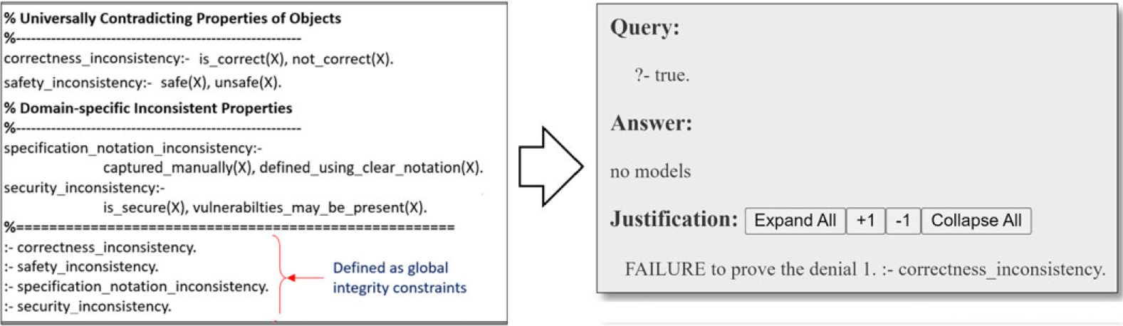 Fig. 10. Consistency rules and s(CASP) analysis output.