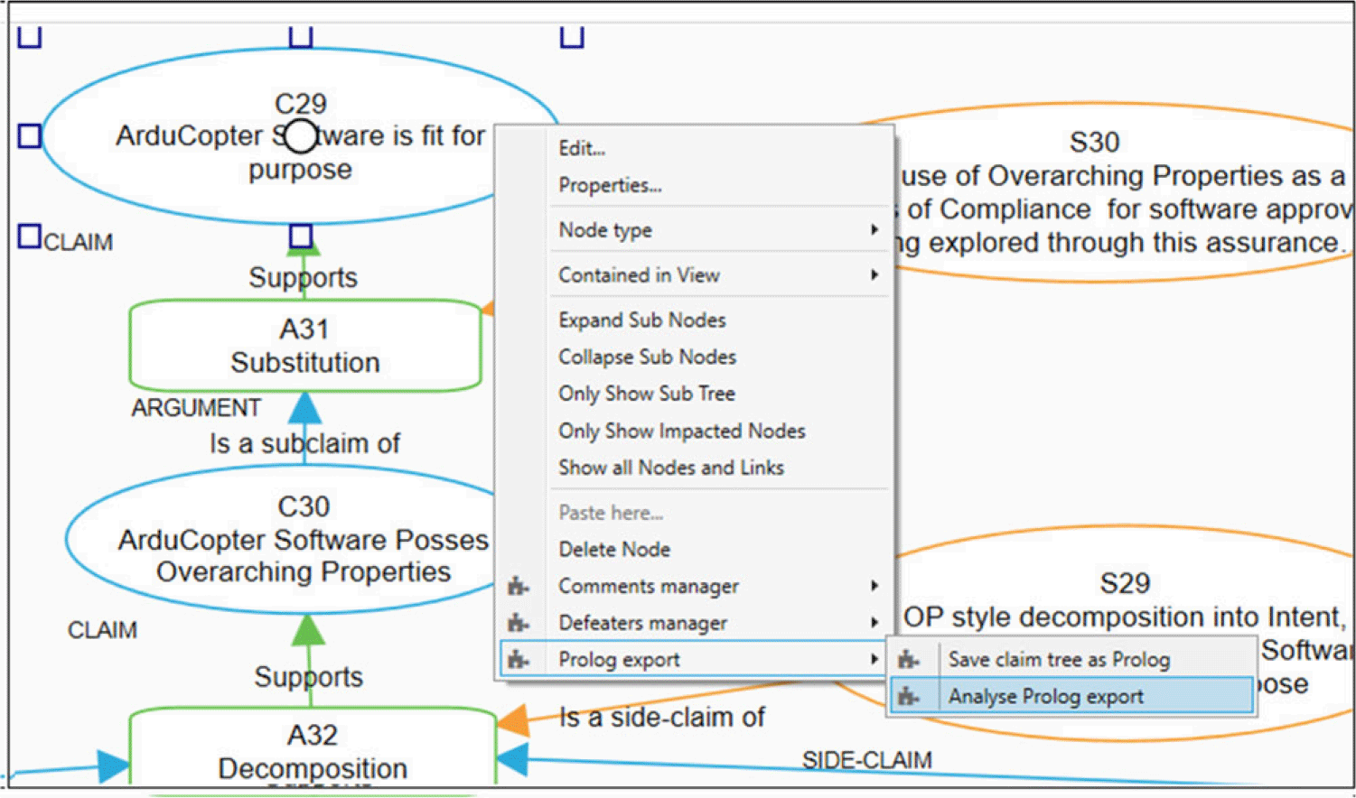 Fig. 6. Snippet of export of arducopter assurance case into ASP.