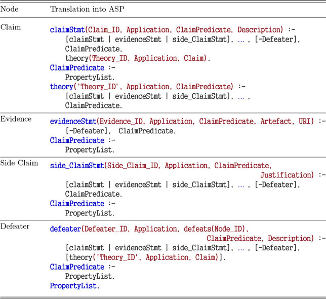 Table 2. Assurance 2.0 node mapping into answer set programming