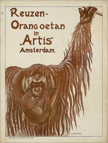 Figure 1. Marie Kelting's advertisement from 1913 featuring Sultan the orangutan at the Amsterdam Zoo. It reads, “Giant-Orangutan in Artis Amsterdam.” From the collections of the Netherlands Institute for Art History (RKD), Image No. 0000184737.