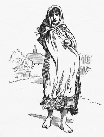 Coinciding with the multitude of social problems arising in the wake of the Industrial Revolution was nineteenth century Europe's most cataclysmic events, the Irish Famine (1845-1852). By the famine's end, Ireland's population had declined by two million, entire villages had disappeared, and Irish poverty had deepened. It took surviving families several generations to reestablish themselves – often in other parts of Great Britain or through immigration to Canada, the United States, Australia, or New Zealand. During the famine, the West of Ireland had been particularly devastated, and Galway, like County Kerry, and Skibbereen in County Cork, became a by-word for the famine's worst ravages. Two constables from Liverpool who traveled through the west of Ireland during the height of the famine reported that they “encountered thousands of men, women and children upon the high roads, moving towards the sea side for the purpose of embarking for England, most of them begging their way and all apparently in a state of great destitution” (qtd. in Woodham-Smith 271). A survey of indigent Irish congregating in the Stepney district of London found them to all be from “Cork, Galway and Skibbereen” (qtd. in Woodham-Smith 282). Ten years after the famine's official end, Kingsley's wandering, footsore, western Irish woman with her traditional garb of gray shawl and “red madder petticoat” would evoke for his British readers memories of the famine's unhealed wounds.